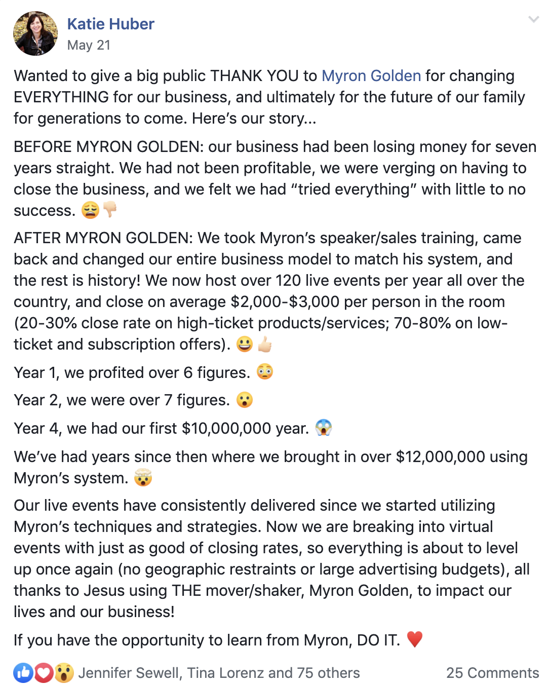Yep, that’s how powerful it is. And there is only ONE person you should trust to get you moving in the right direction with more offers…my mentor and trusted friend Myron Golden.